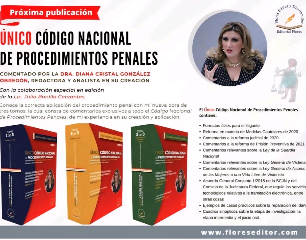 Autora del Manual Práctico del Juicio Oral en México y del Código Nacional de Procedimientos Penales comentado en tres tomos.